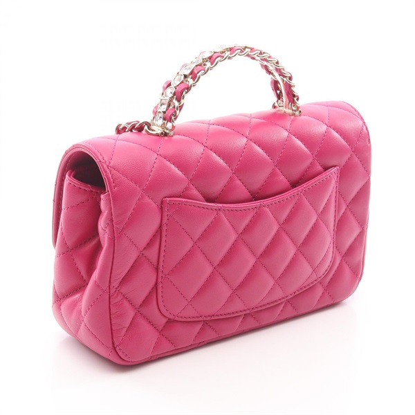 CHANEL Matelasse Top Handle Chain Shoulder Bag AS4140 Lamb leather Pink Used GHW