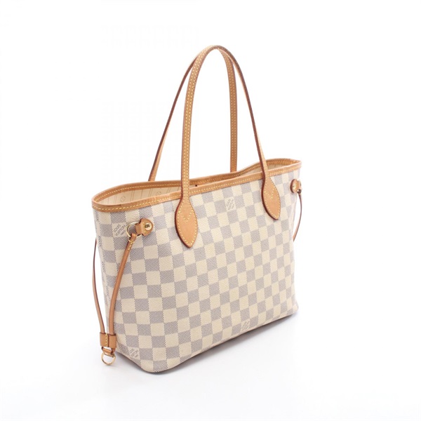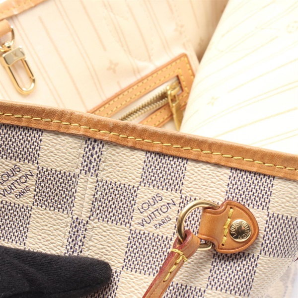 LOUIS VUITTON Neverfull PM Tote shoulder Bag N51110 Damier Azur leather White LV