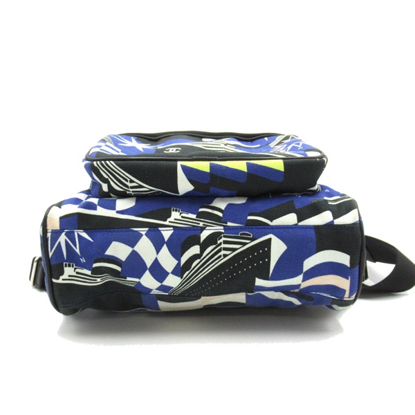 CHANEL Cruise Line Rucksack Backpack canvas Blue Black Used Women SHW CC Coco