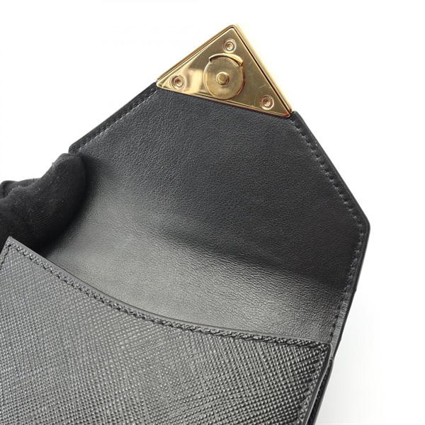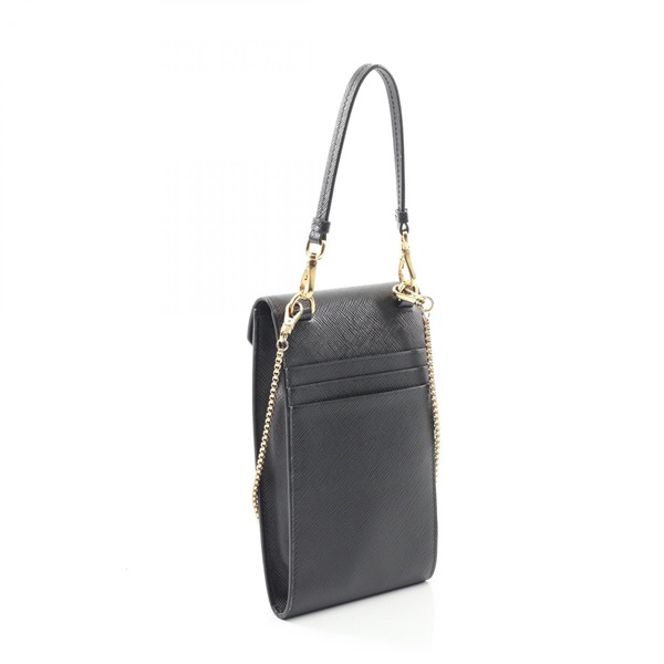 PRADA Triangle Logo Chain Phone Holder Handbag 1BP050 Saffiano leather Black