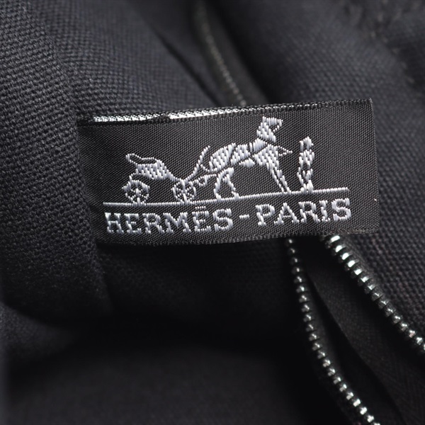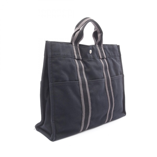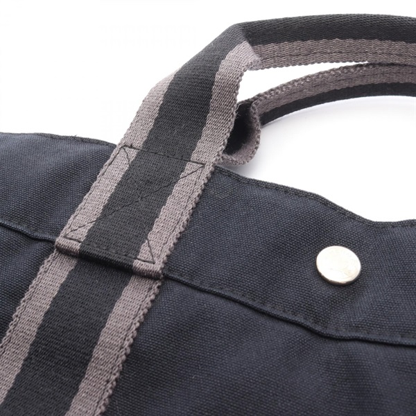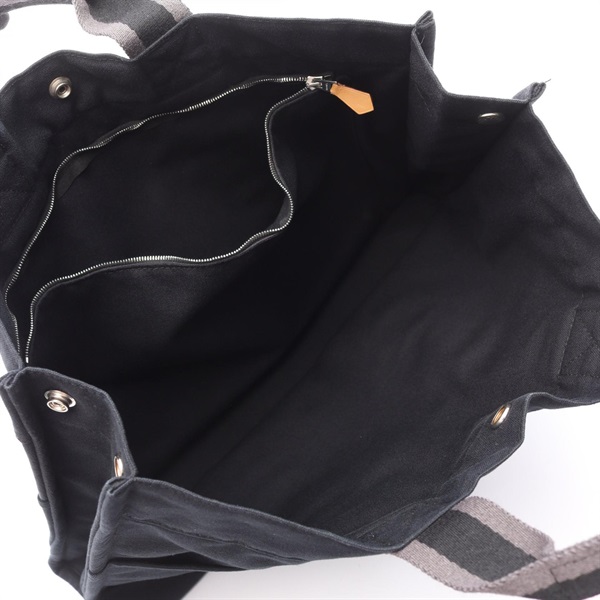 HERMES Fourre-toutMM Hand Tote Bag canvas Black Gray Used Women