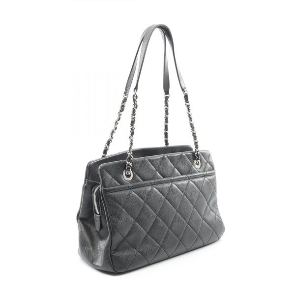 CHANEL Matelasse Tote chain shoulder Bag A67294 leather Black Used Women COCO CC