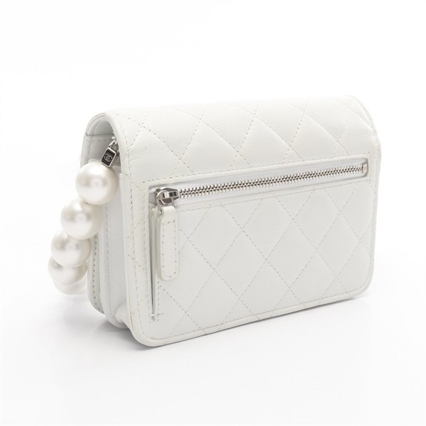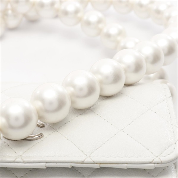CHANEL Matelasse Pearl Chain Shoulder Bag AP1839 leather White Used Women SHW CC