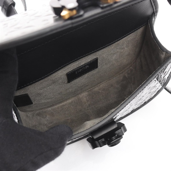 Christian Dior GALLOP Oblique crossbody Shoulder Bag Patent leather Gray Black