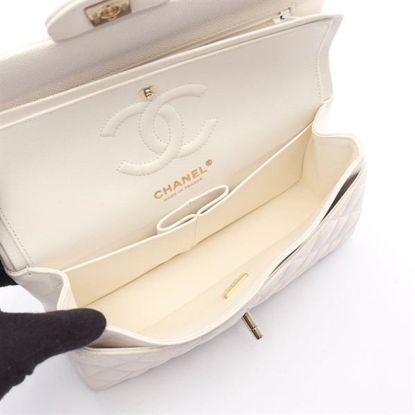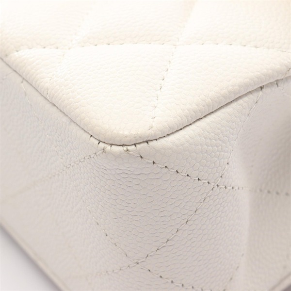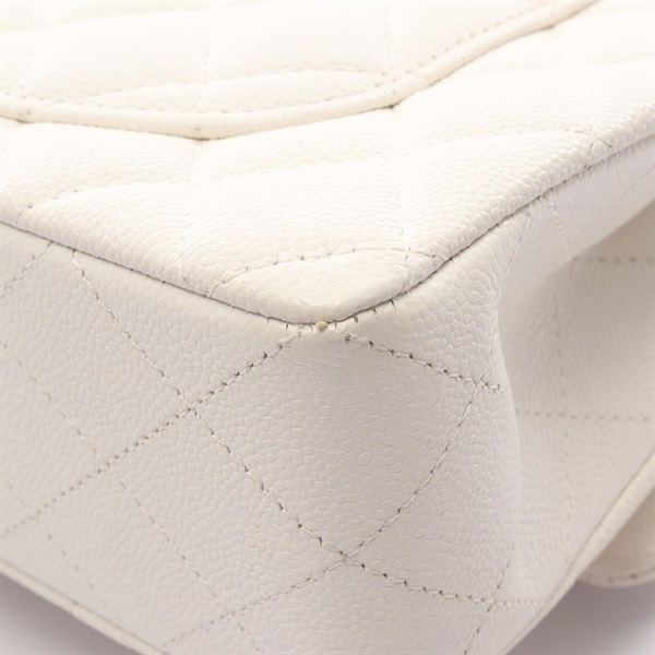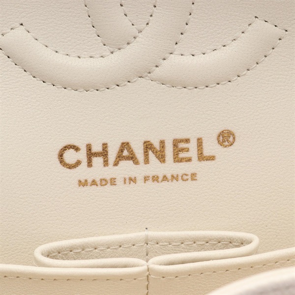 CHANEL Matelasse Double Flap Chain Shoulder Bag A01113 Calfskin White GHW Used