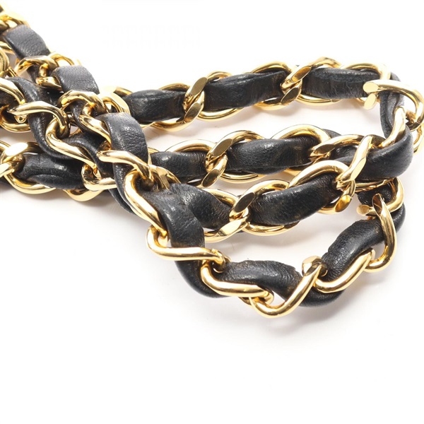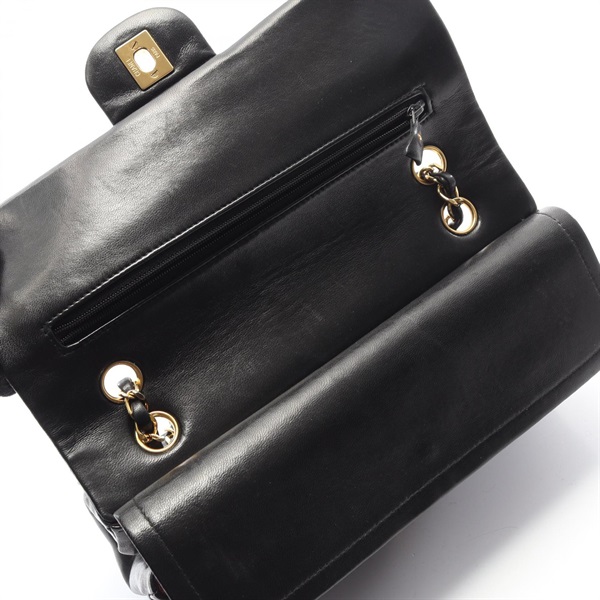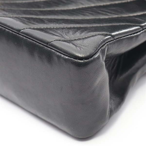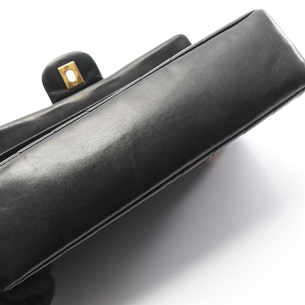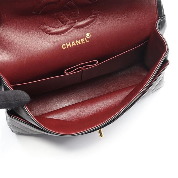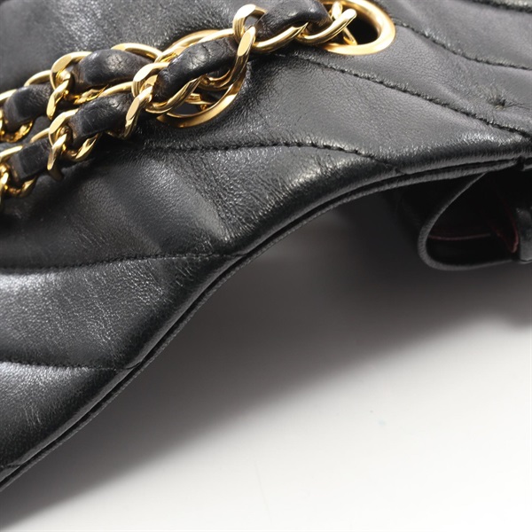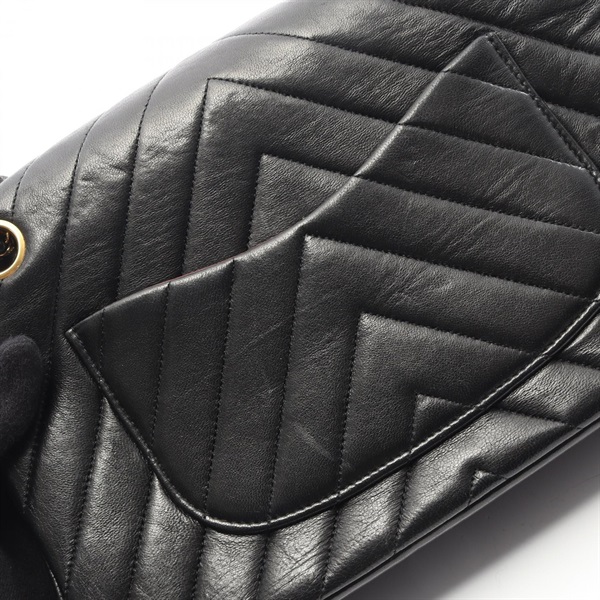 CHANEL Chevron V-stitch W-flap chain Shoulder Bag Lambskin Black Used GHW