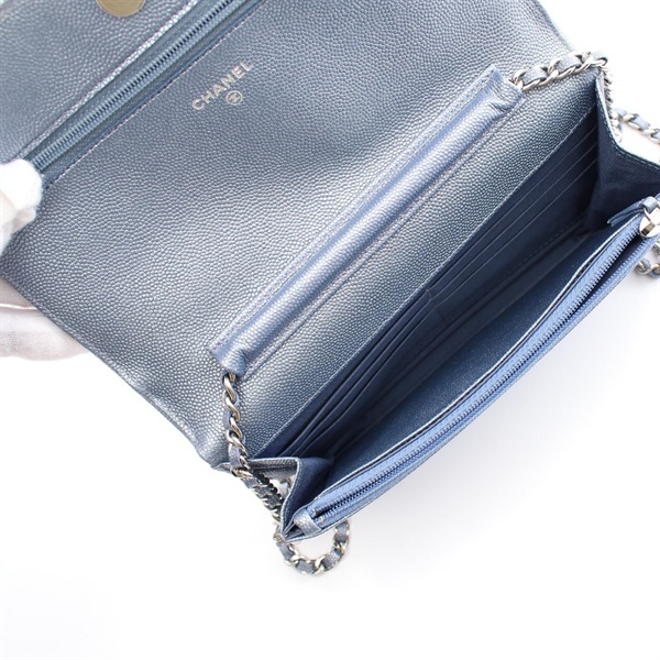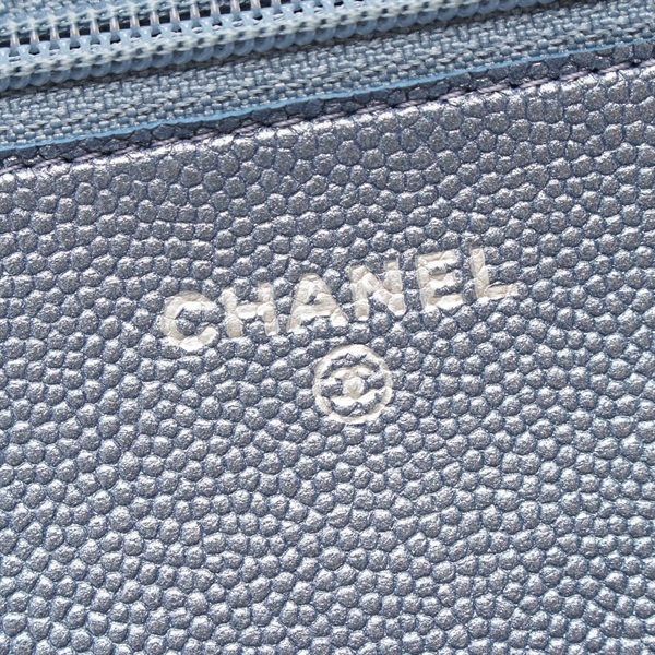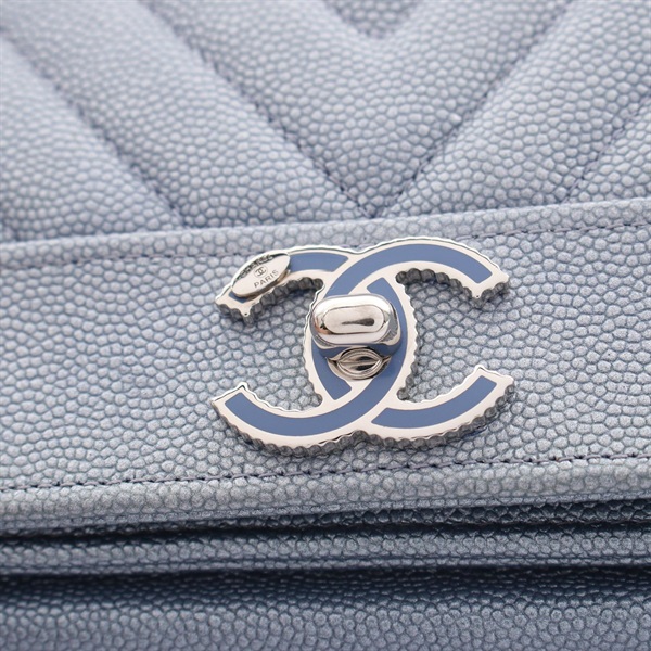 CHANEL V-Stitch Chevron chain Shoulder Bag Caviar Skin leather Blue Used Women