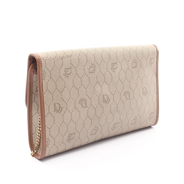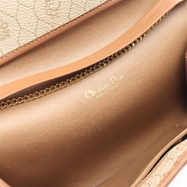 Dior Honeycomb chain Shoulder Bag PVC coated canvas leather Beige Used Women GHW