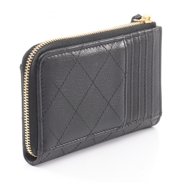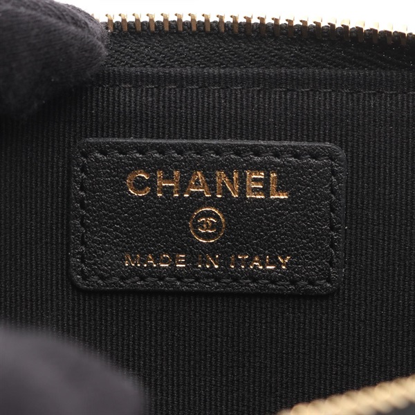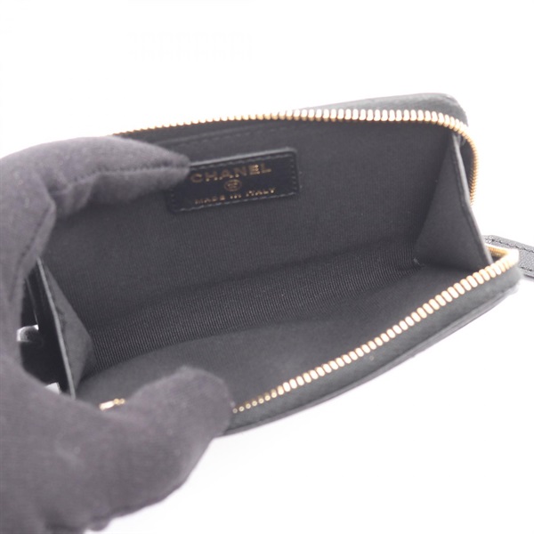 CHANEL COCO Mark Zip Card Case Coin purse AP4917 leather Black GHW Used Women CC