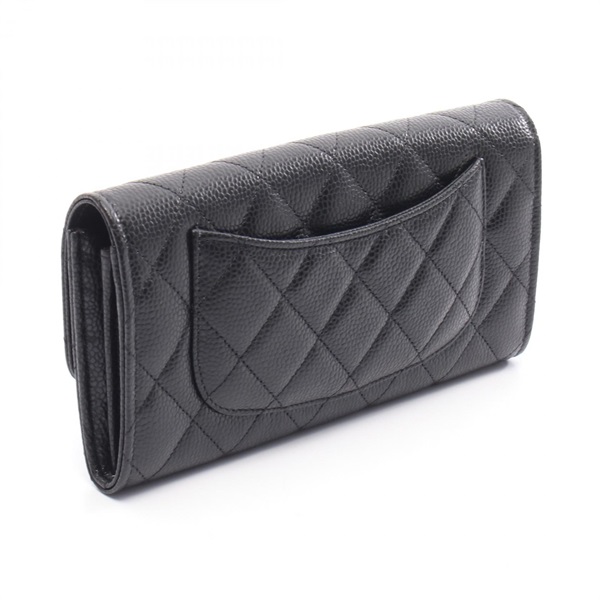 CHANEL Classic Long Flap Wallet Matelasse Bifold purse AP0241 leather Black SHW
