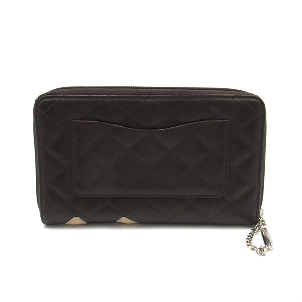 CHANEL Cambon line around long wallet purse leather Brown SHW Used
