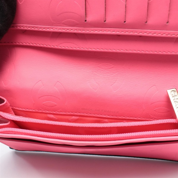 CHANEL Cambon line Bifold long wallet purse leather Patent leather Black Used CC