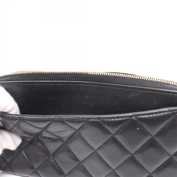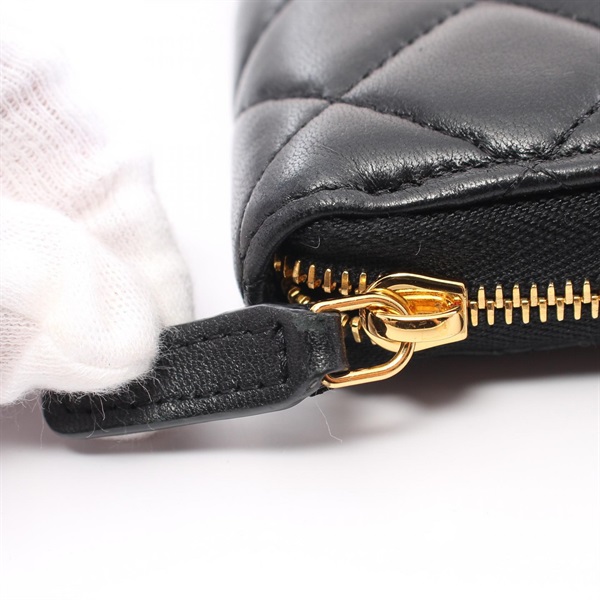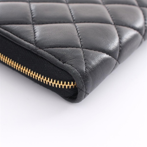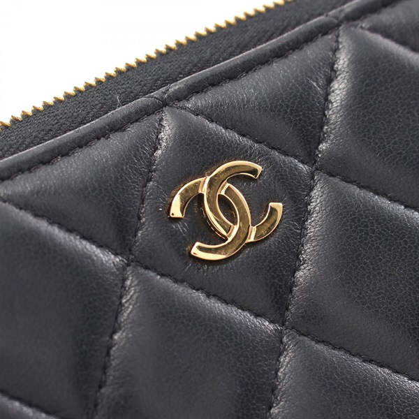 CHANEL CC Matelasse Round long wallet Purse lamb Leather Black Used Women Coco