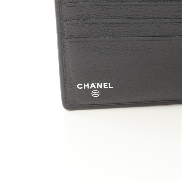 CHANEL Butterfly camelia bifold wallet purse lambskin Black Used SHW