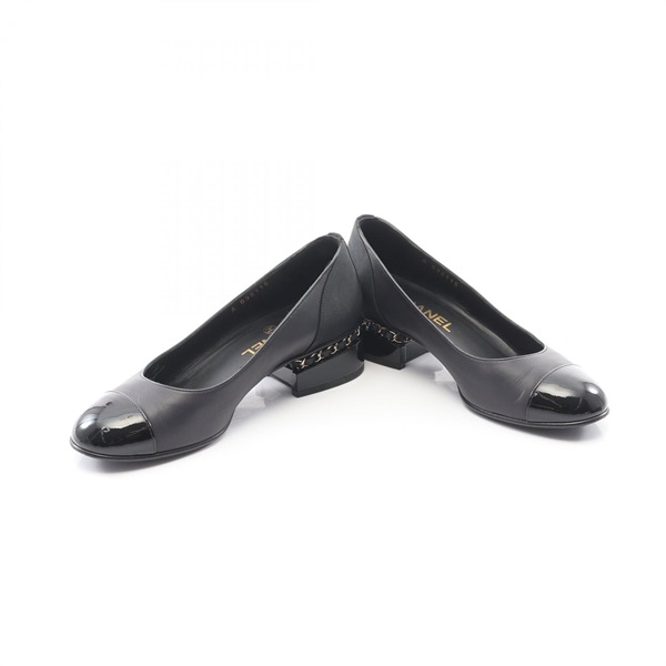 CHANEL COCO Mark pumps loafers #35 1/2 leather Black Used Women CC