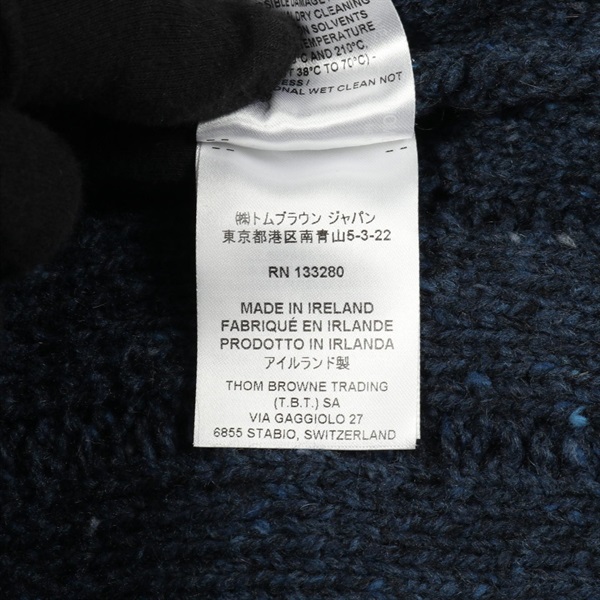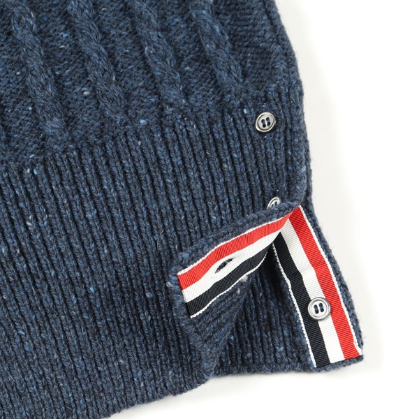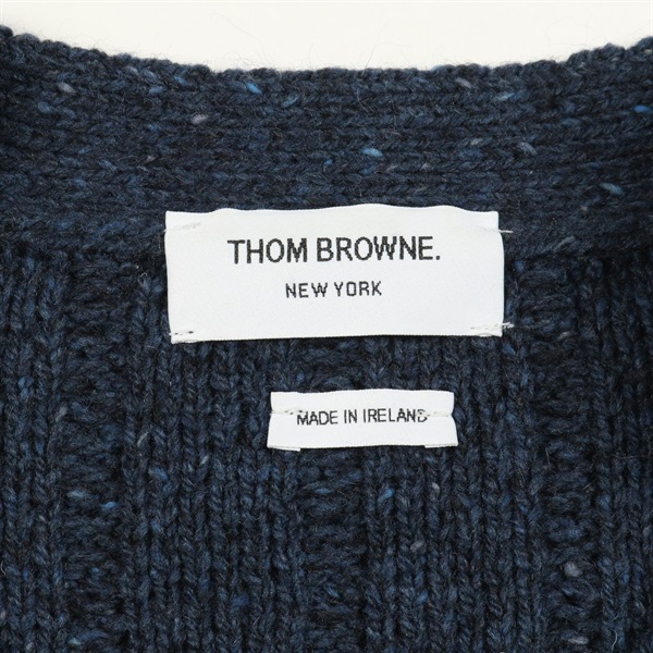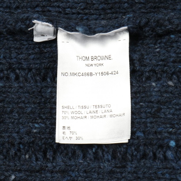 THOM BROWNE 4-bar Twisted Cable cardigan wool Moheya Navy Beige #2 Used mens
