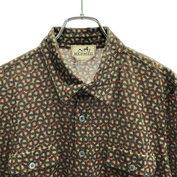 "HERMES Short sleeve polo shirt cotton Khaki Used mens #M" is out of stock.