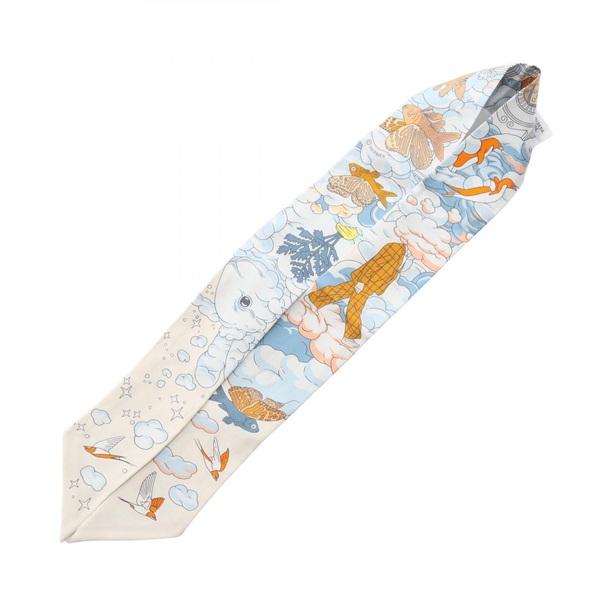 "HERMES Twilly SUR MON NUAGE Scarf silk Beige Blue White Multicolor Used Women" is out of stock.