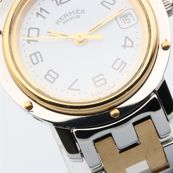 HERMES Clipper Wrist Watch CL4.220 Quartz Gold Plated Stainless Steel Used Women