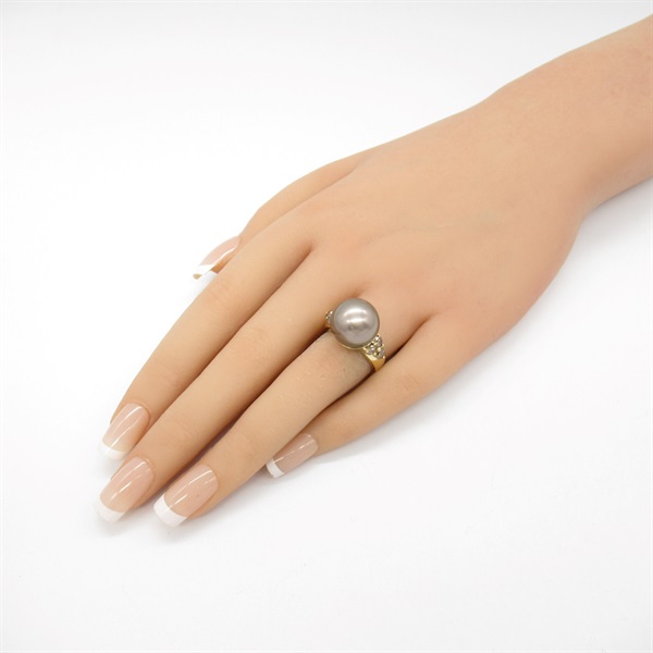 JEWELRY Tahitian pearl Ring 18KYG Yellow Gold Gray Used women US size 5.75