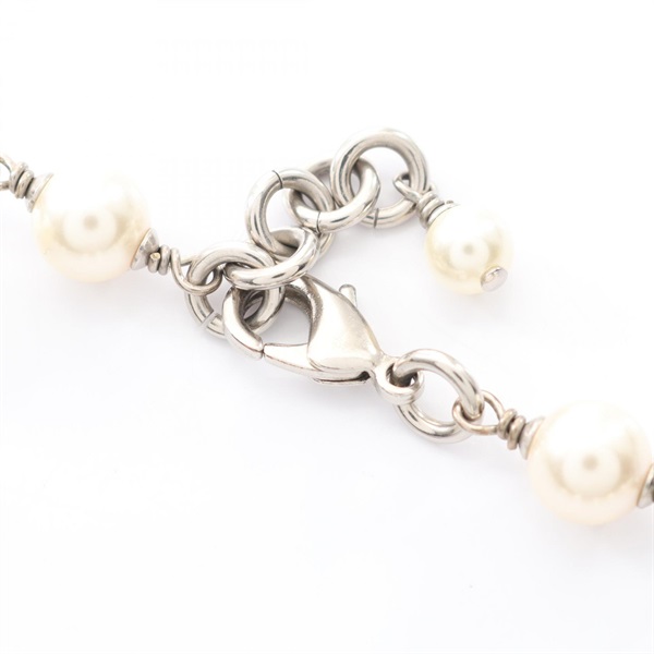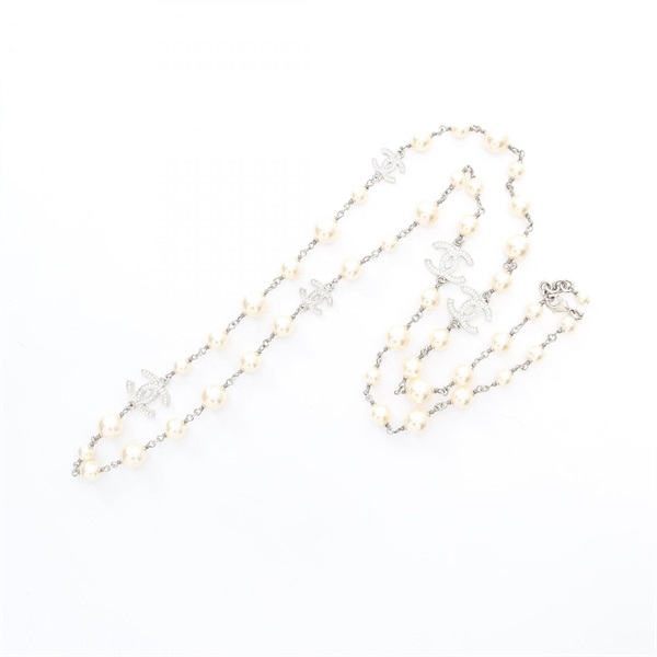 CHANEL COCO Mark Necklace Stainless Steel Artificial pearl Rhinestone Used Women
