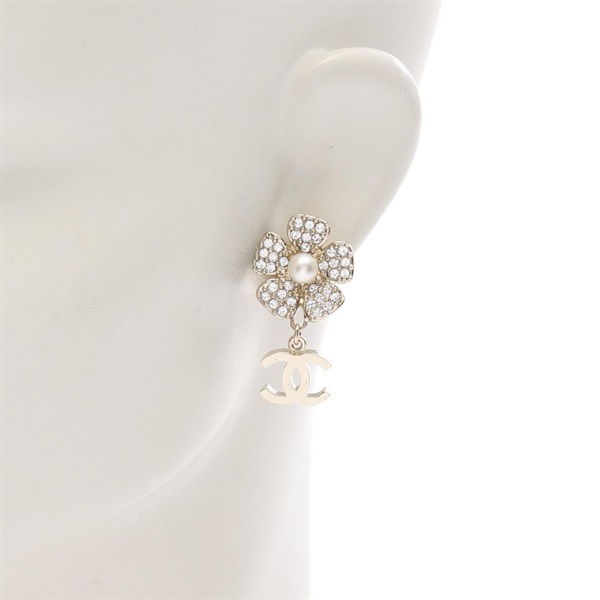 "CHANEL Coco Flower Pierced earrings Gold Plated Artificial pearl rhinestone Used" is out of stock.