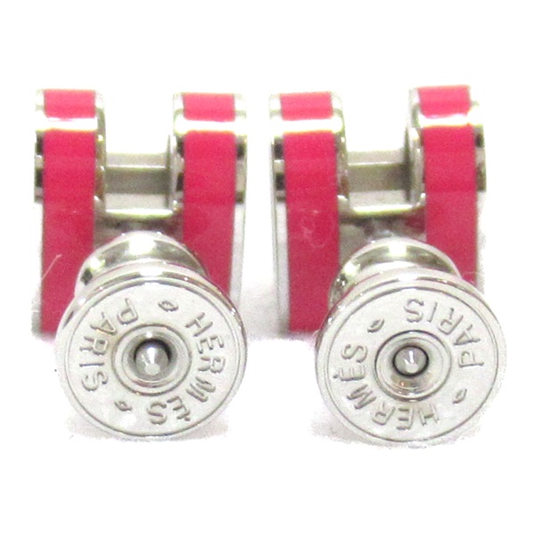 HERMES pop H mini pierced earrings Lacquer metal Silver plating rose tropic Used