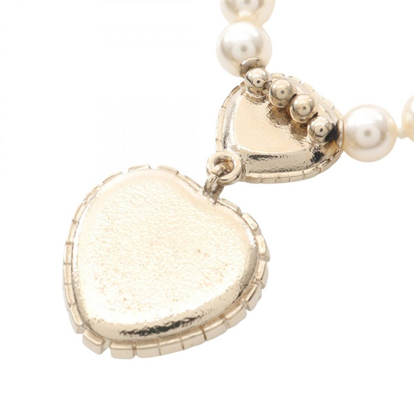 CHANEL COCO Mark Heart Necklace Gold Plated Artificial pearl rhinestone Used CC
