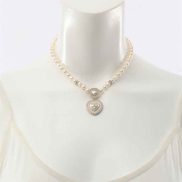 "CHANEL COCO Mark Heart Necklace Gold Plated Artificial pearl rhinestone Used CC" is out of stock.