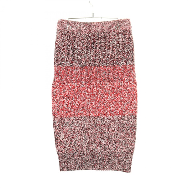 BURBERRY Cashmere Cotton Wool Blend Mouline Skirt Red Black #M Used Women