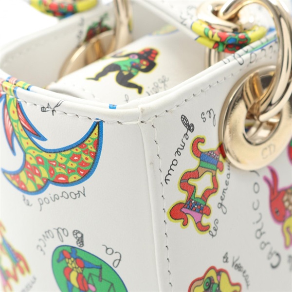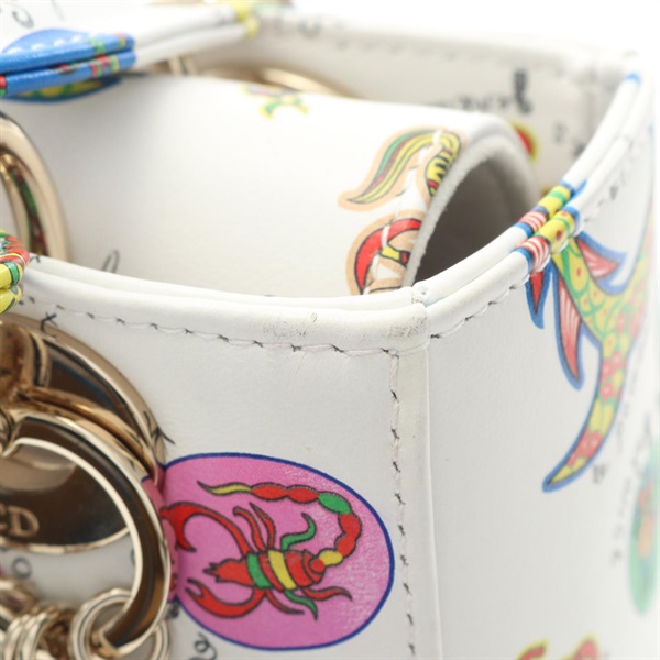 Christian Dior Lady Dior Small 2Way Shoulder Handbag leather White Multi Used CD