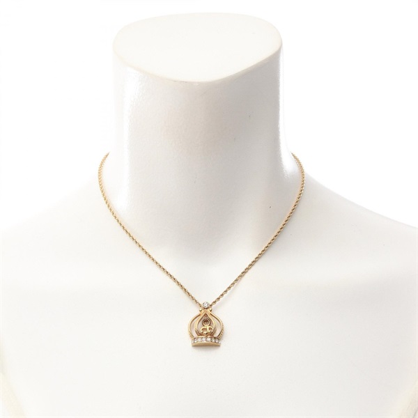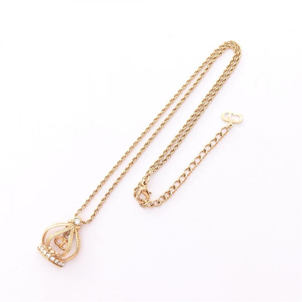 Christian Dior CD logo crown Necklace Pendant 38~43cm Gold Plated Rhinestone