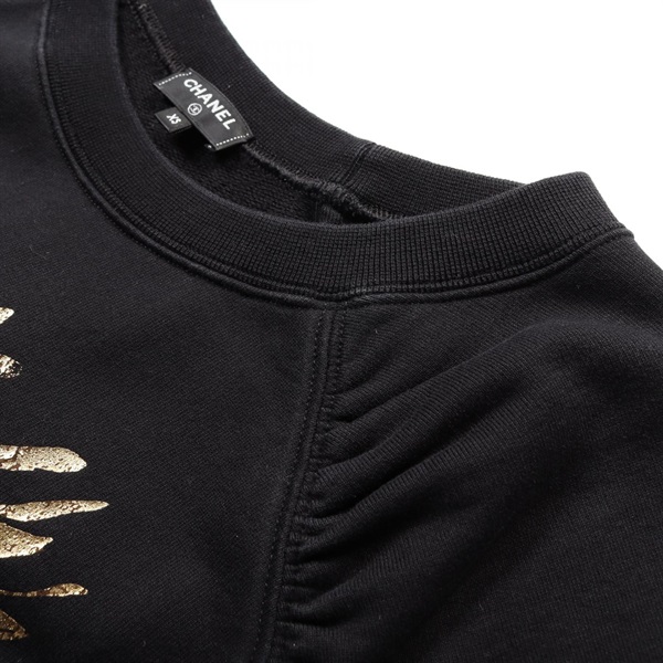 CHANEL COCO Mark T-shirt Tops P57840K07626 18C cotton Black Gold Used Women XS