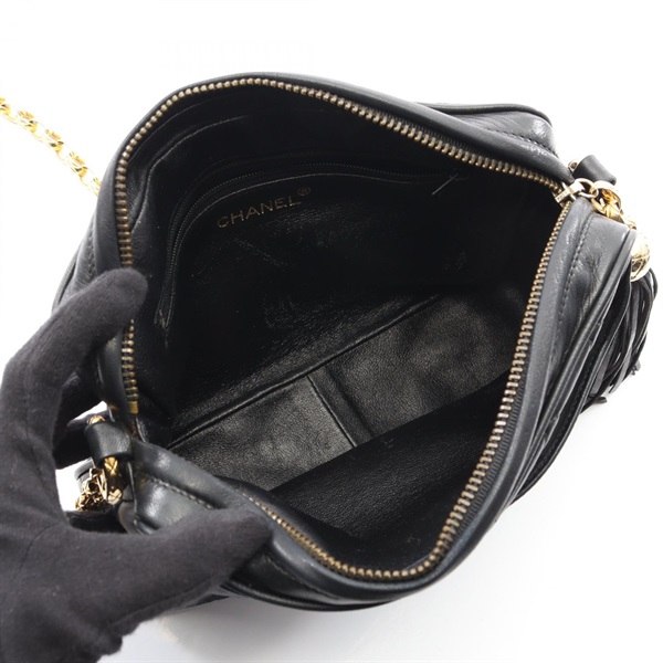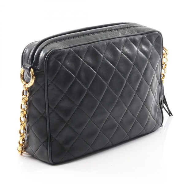 CHANEL Matelasse Chain Shoulder Bag Lambskin sheep leather Black Used Women GHW