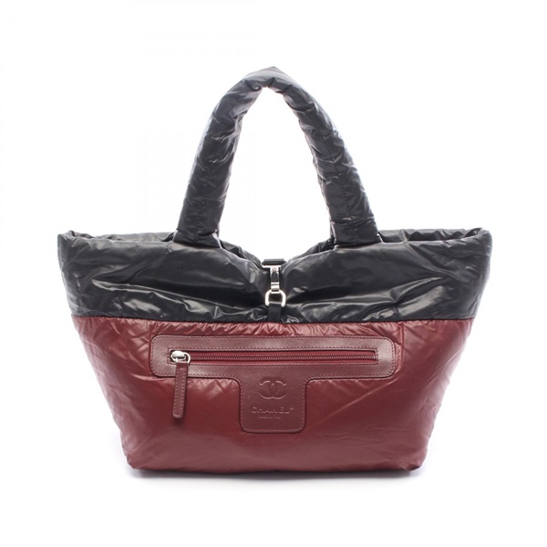 CHANEL Coco Cocoon Small Tote hand Bag A48610 Nylon leather Black Bordeaux SHW