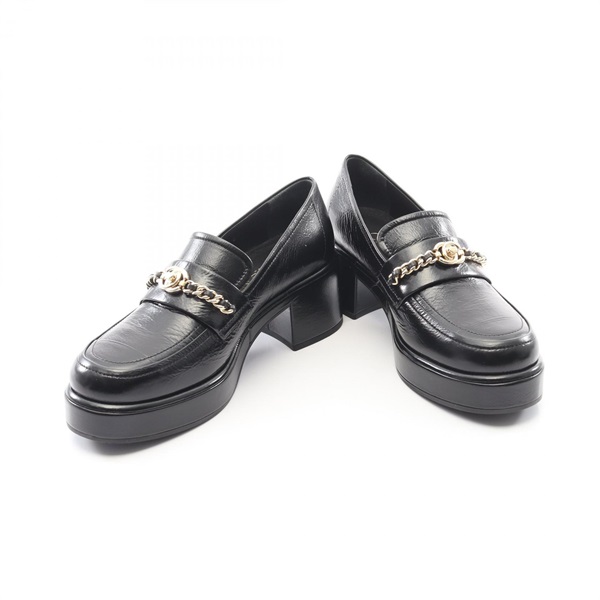 CHANEL COCO Mark loafers Pumps G46068 leather Black #37 Used Women