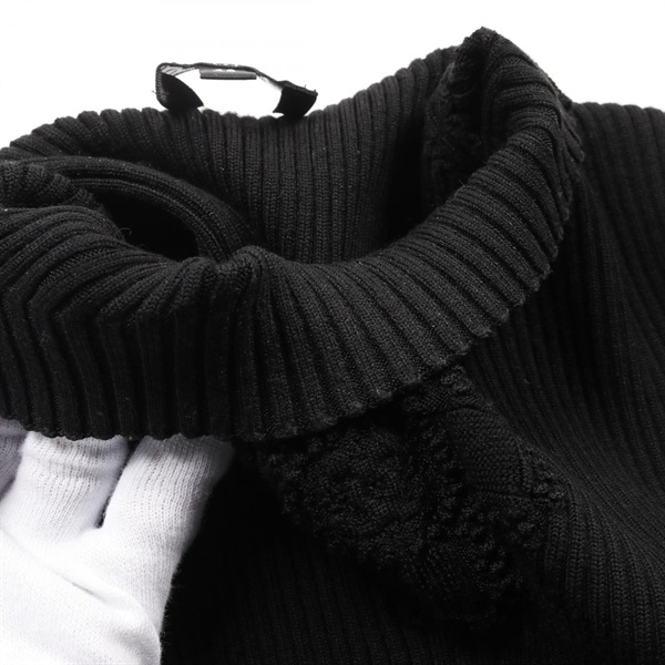 CHANEL COCO Mark Clover knitwear sweater #40 P64687K60670 Rayon wool Black Used
