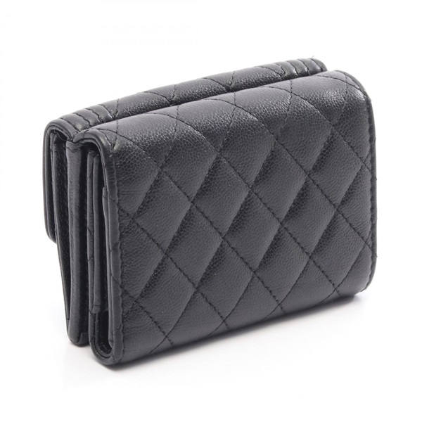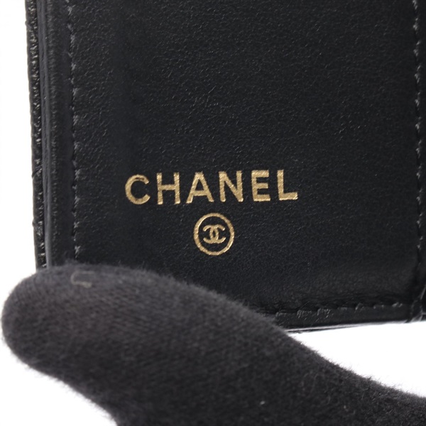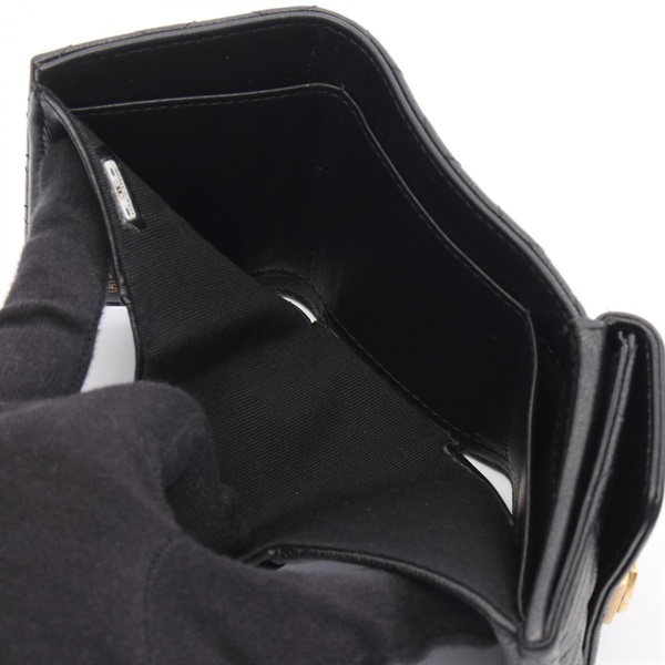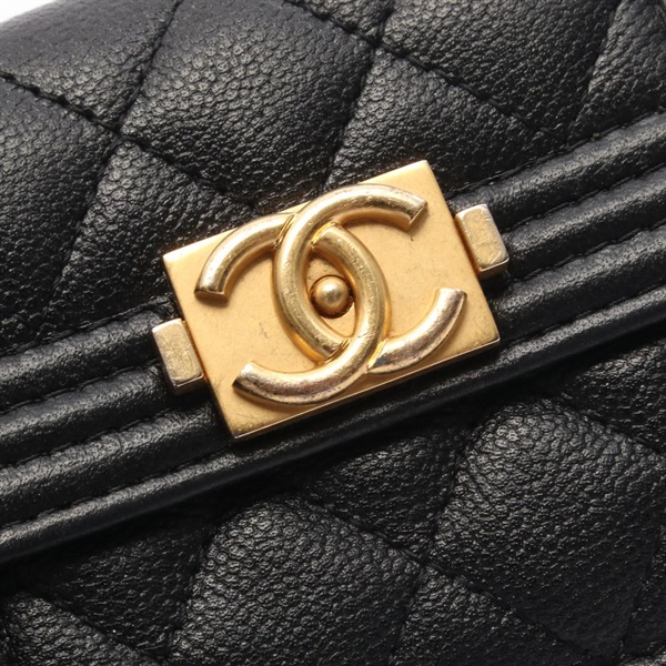 CHANEL Boy Chanel Tri-fold wallet purse Grained calfskin leather Black GHW Used