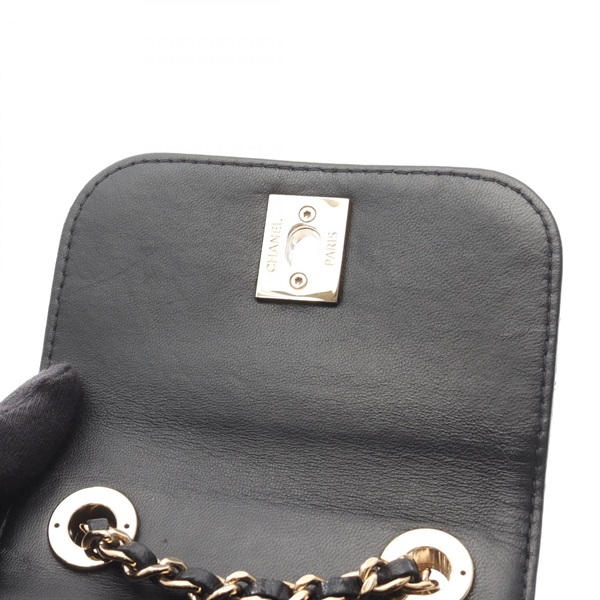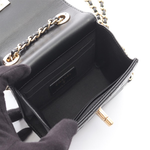 CHANEL Mini Matelasse Chain Shoulder Bag Lambskin Black GHW Used Women Coco CC