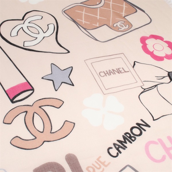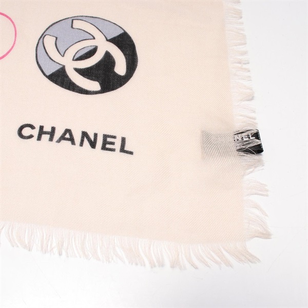 CHANEL icon Stole wrap scarf cashmere Beige Multicolor Used Women CC Coco