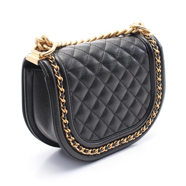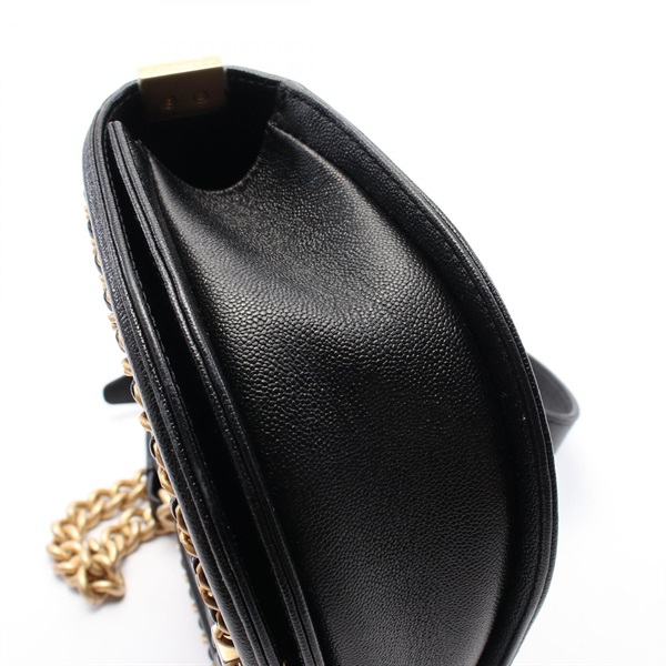 CHANEL Boy Chanel Small Chain Shoulder Bag AS3350 leather Black Used Women GHW