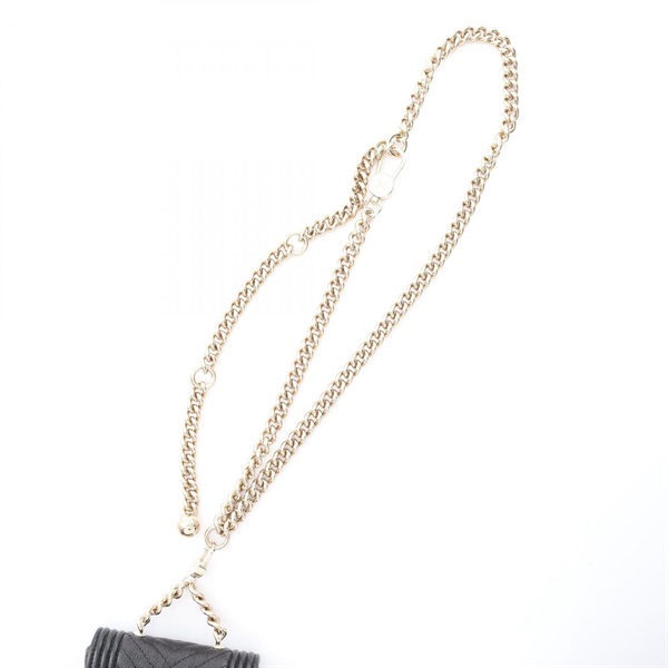CHANEL Boy chanel Chain Shoulder Bag leather Grained calfskin Black Used GHW CC