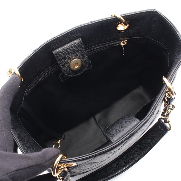 CHANEL Matelasse PST Tote chain shoulder Bag leather Calfskin Black Used GHW