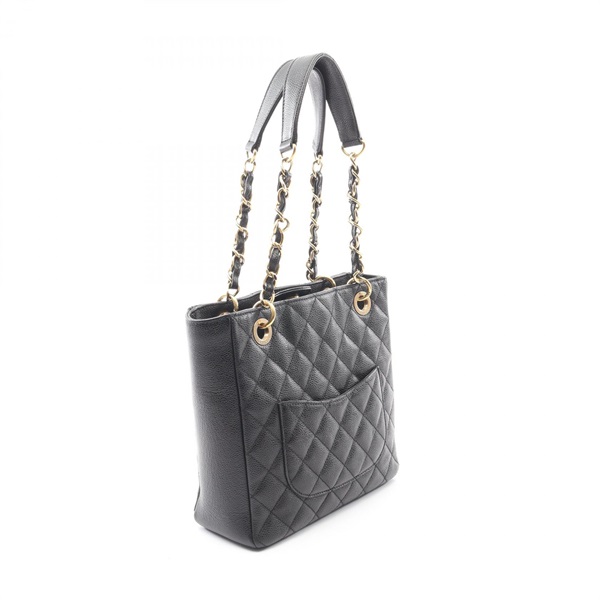 CHANEL Matelasse PST Chain Tote Shoulder Bag Grained calf leather Black GHW Used
