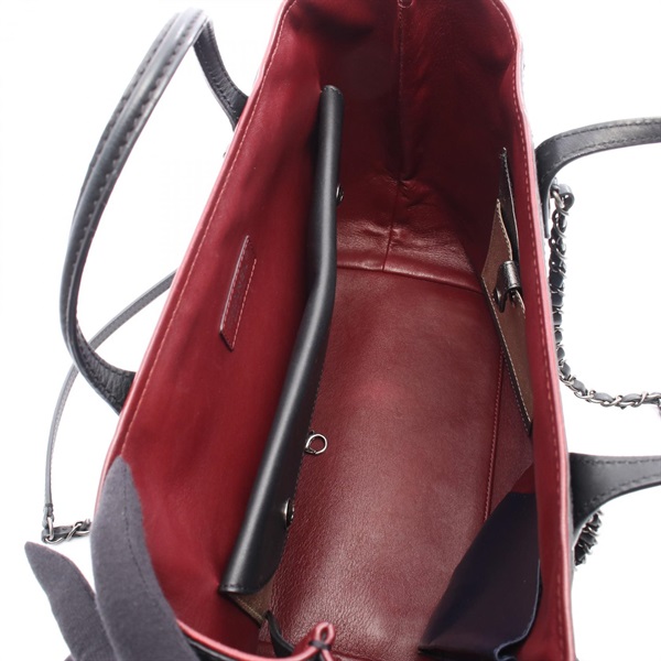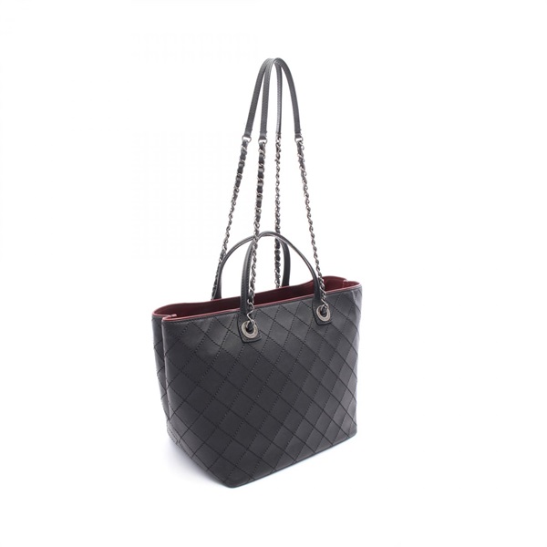 CHANEL On the Road Matelasse Chain shoulder Tote Bag leather Black Bordeaux Used