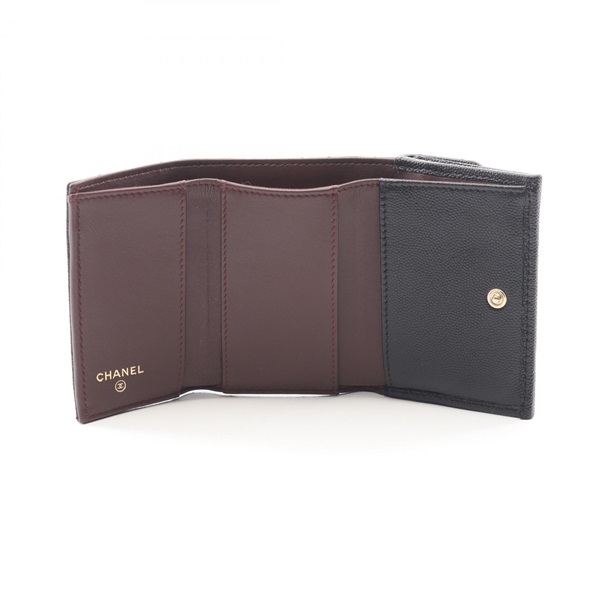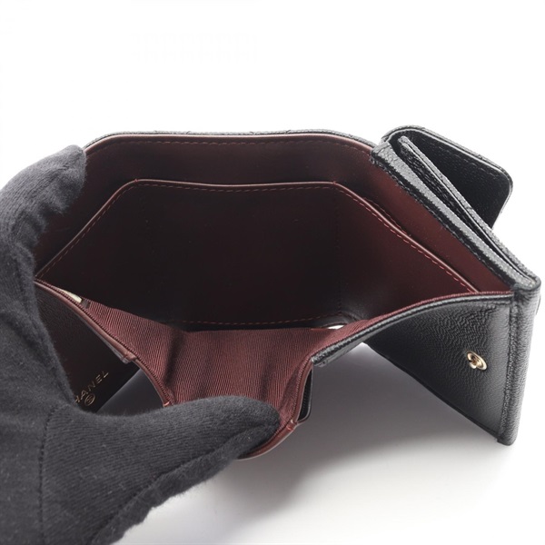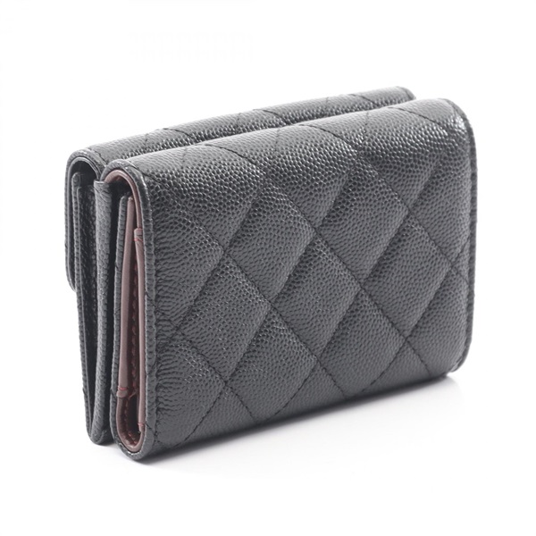 CHANEL Classic Matelasse Tri-fold wallet AP0230 leather Black Used GHW women CC
