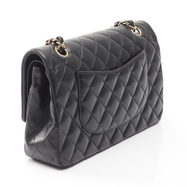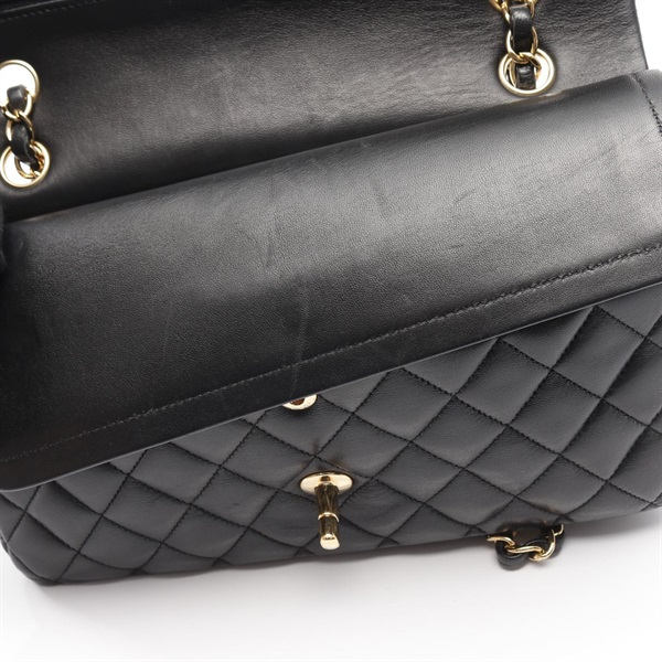 CHANEL Matelasse W flap chain Shoulder Bag A01112 Lambskin Black Used GHW