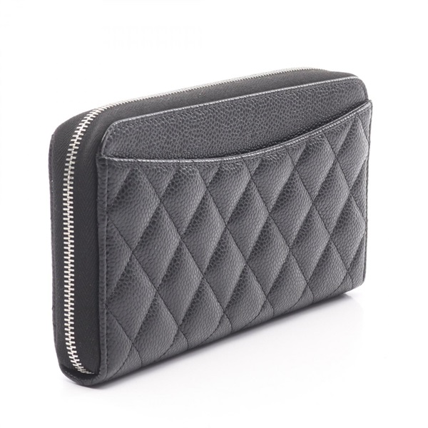 CHANEL Classic Long Zip Wallet Matelasse AP0242 leather Black Used Women SHW CC