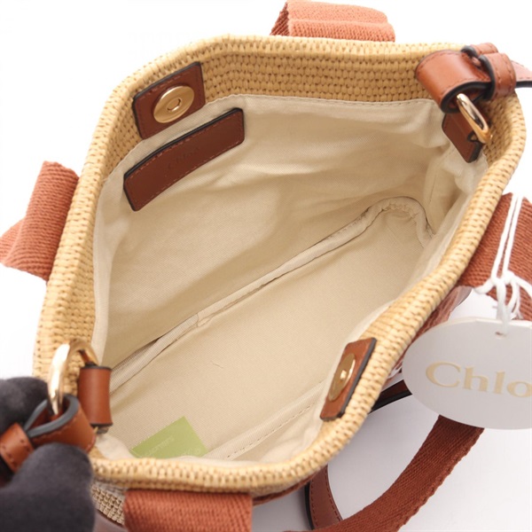 Chloe Kids Shoulder hand Bag C20587239 leather artificial straws Beige Brown NEW