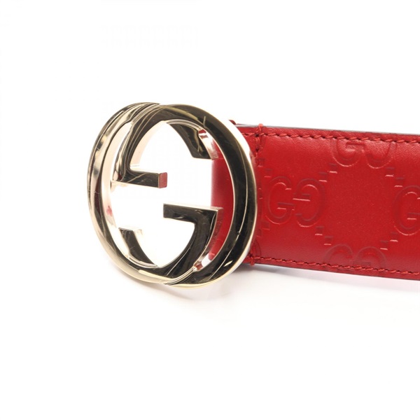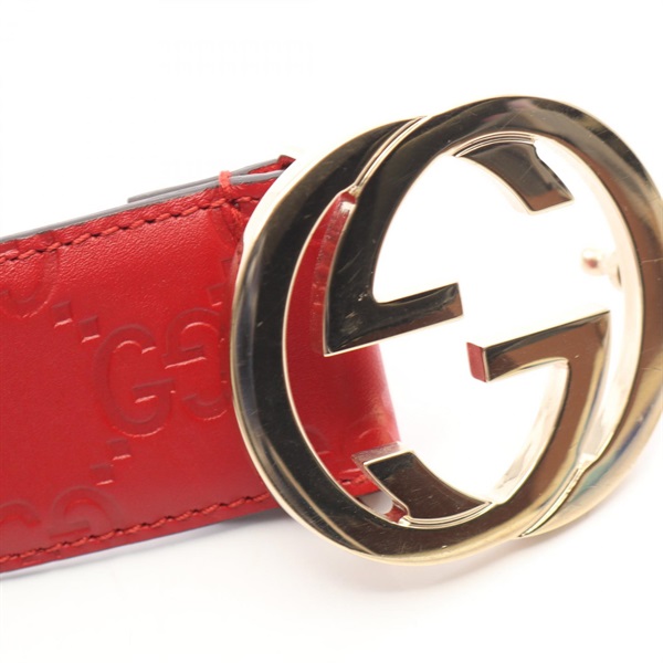 GUCCI Interlocking G belt 370543 leather Red GHW Used Women